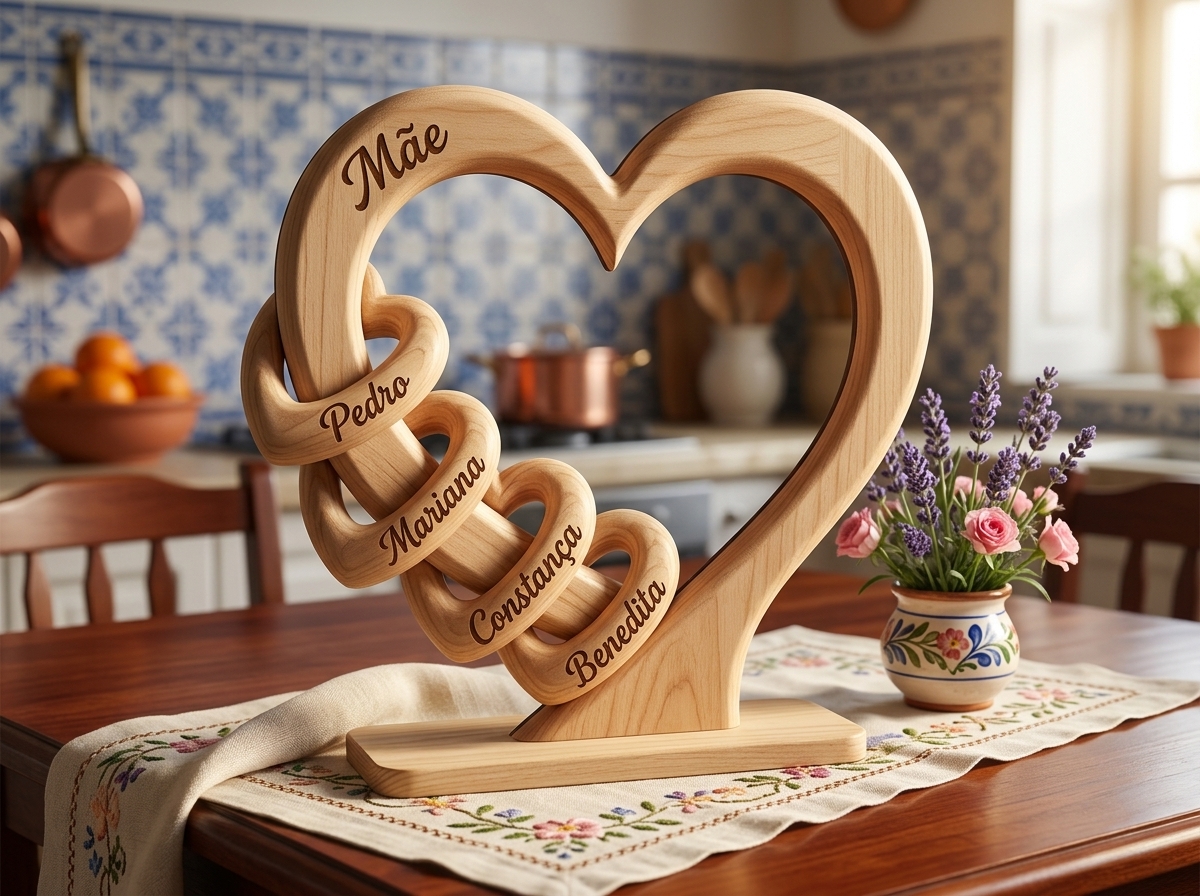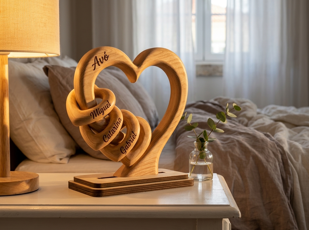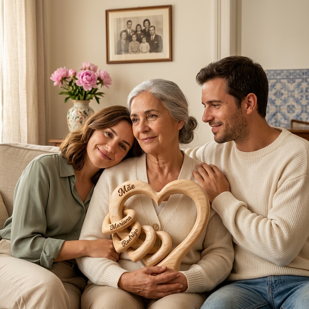 ✓ Compra verificada"Escolhi o de 5 nomes,Mãe, e os 4 filhos. A minha mãe chorou ao abrir. É um presente que se guarda para sempre."